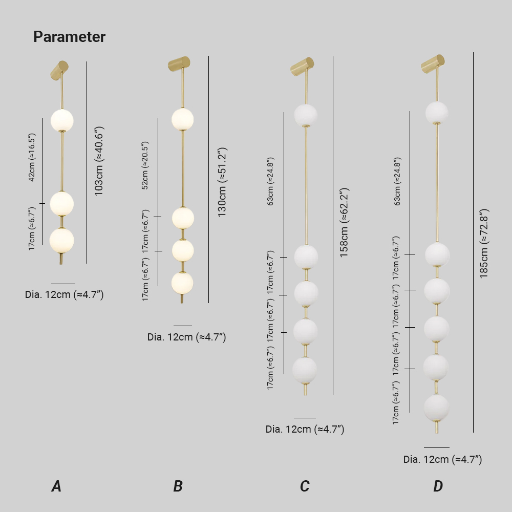 - This modern wall sconce is a stunning blend of simplicity and elegance, featuring a sleek vertical design that works beautifully in any contemporary or minimalist space. With five evenly spaced frosted glass globes suspended along a brass stem, this fixture provides a soft and inviting glow, perfect for creating an ambient atmosphere.